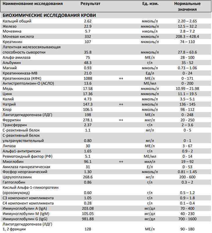 Ты как себя чувствуешь вообще? нормально?))) по анализам у тебя инфаркт так то))))
