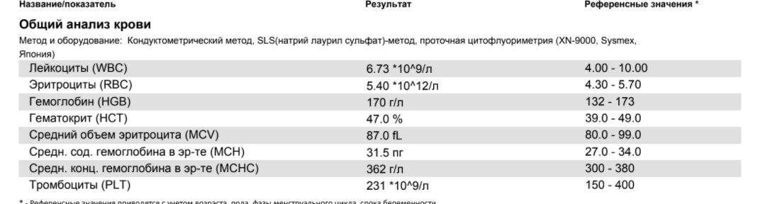 Первый анализ гематокрит 57+