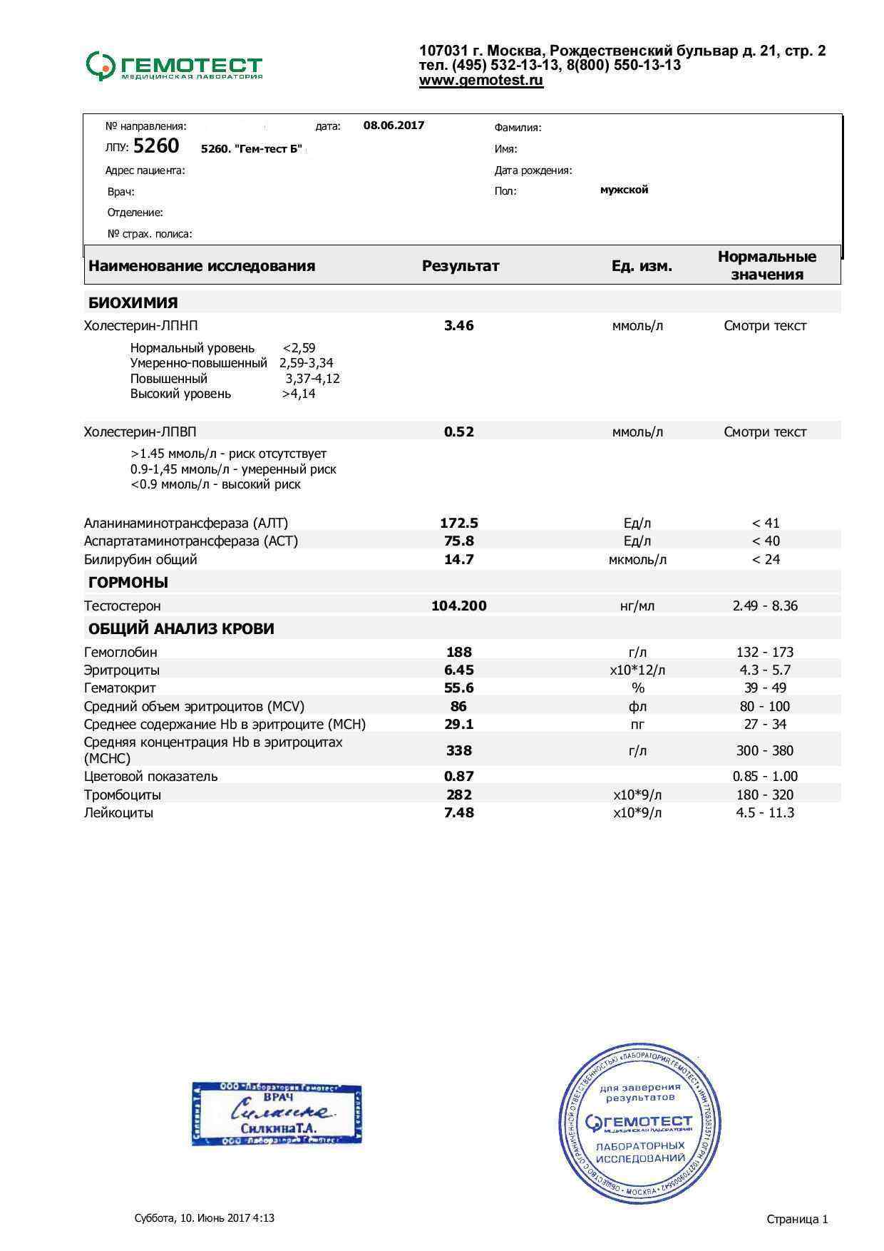 Анализ сдан по всем канонам.