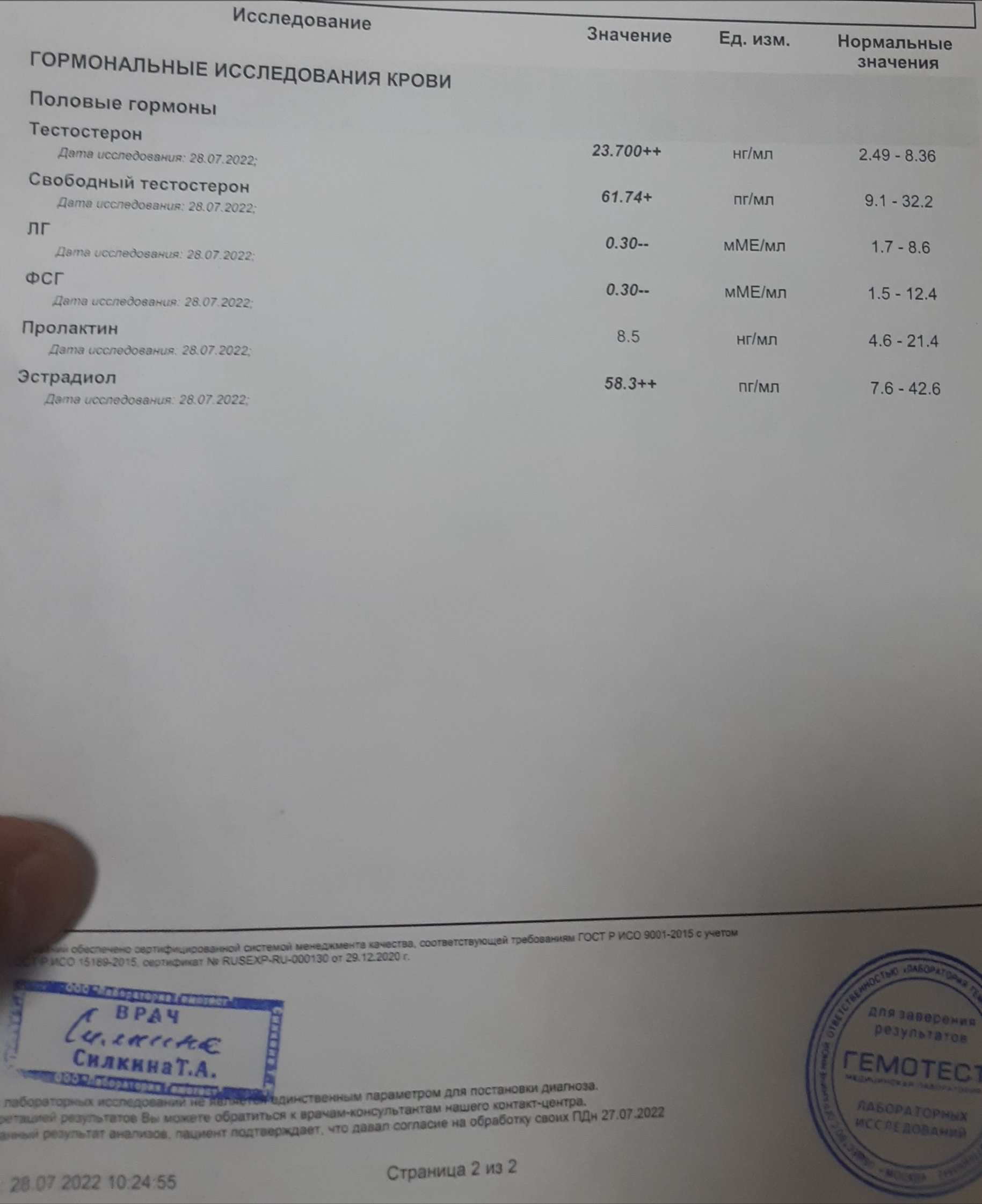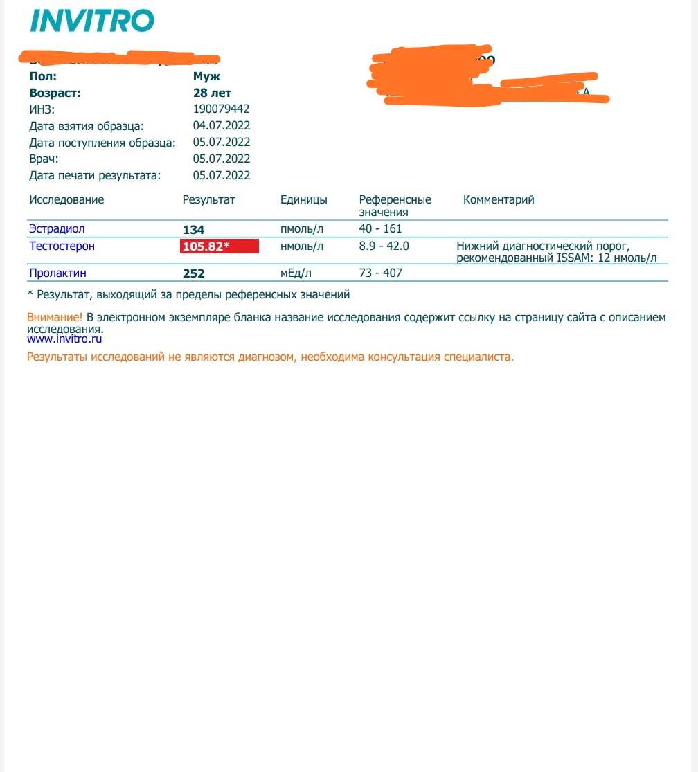 Анализ был сдан через 36 часов после инъекции.
