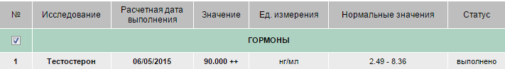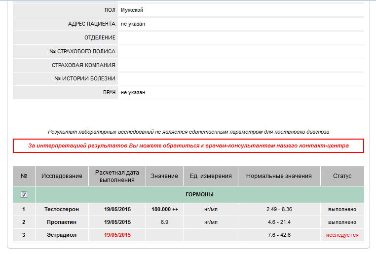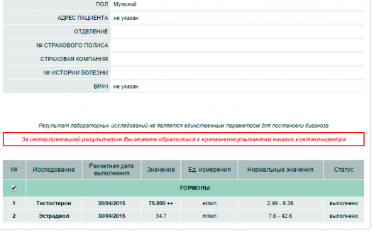 * результат со звёздочкой = анализ взят в лаборатории с ограничением.