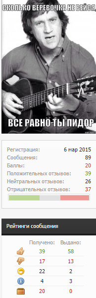 просто он гад так то ,влез не в свой разговор и меня забанили из за него ,причём второй раз сначало абсалютли выбешивал теперь этот кретин ,вот какого ему надо лезть не в свой разговор ? только бабы влазиют не в свои дела и только бабы и по мне он баба .
